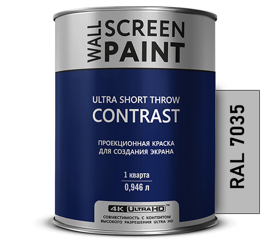 Уникальная проекционная краска для создания экранной поверхности для ультра-короткофокусных проекторов. Наличие в составе светоотражающих и поглощающих пигментов позволяет усилить контраст и глубину чёрного цвета, а рельеф поверхности обеспечивает лучшее отражение света проектора в сторону зрителя.